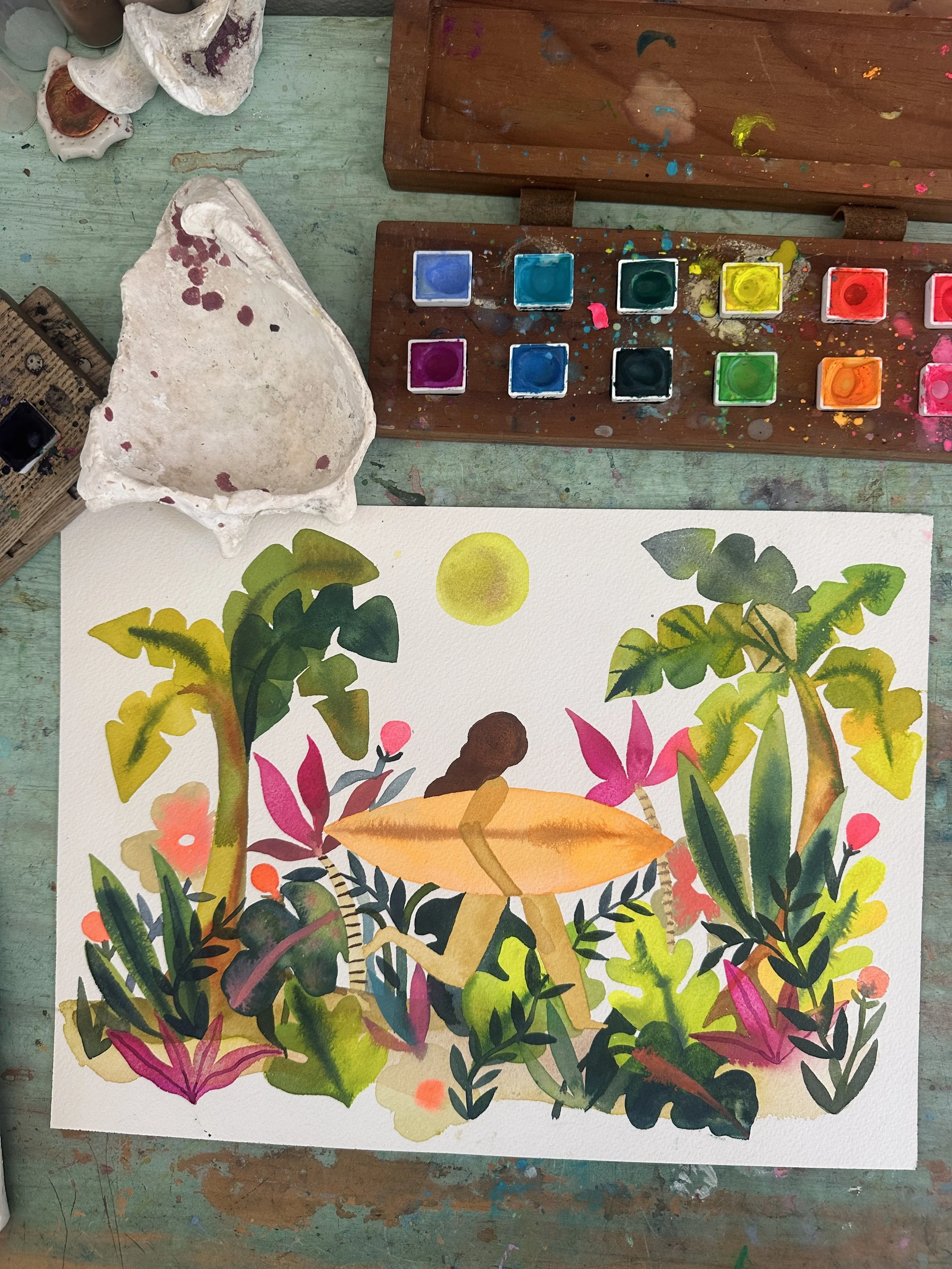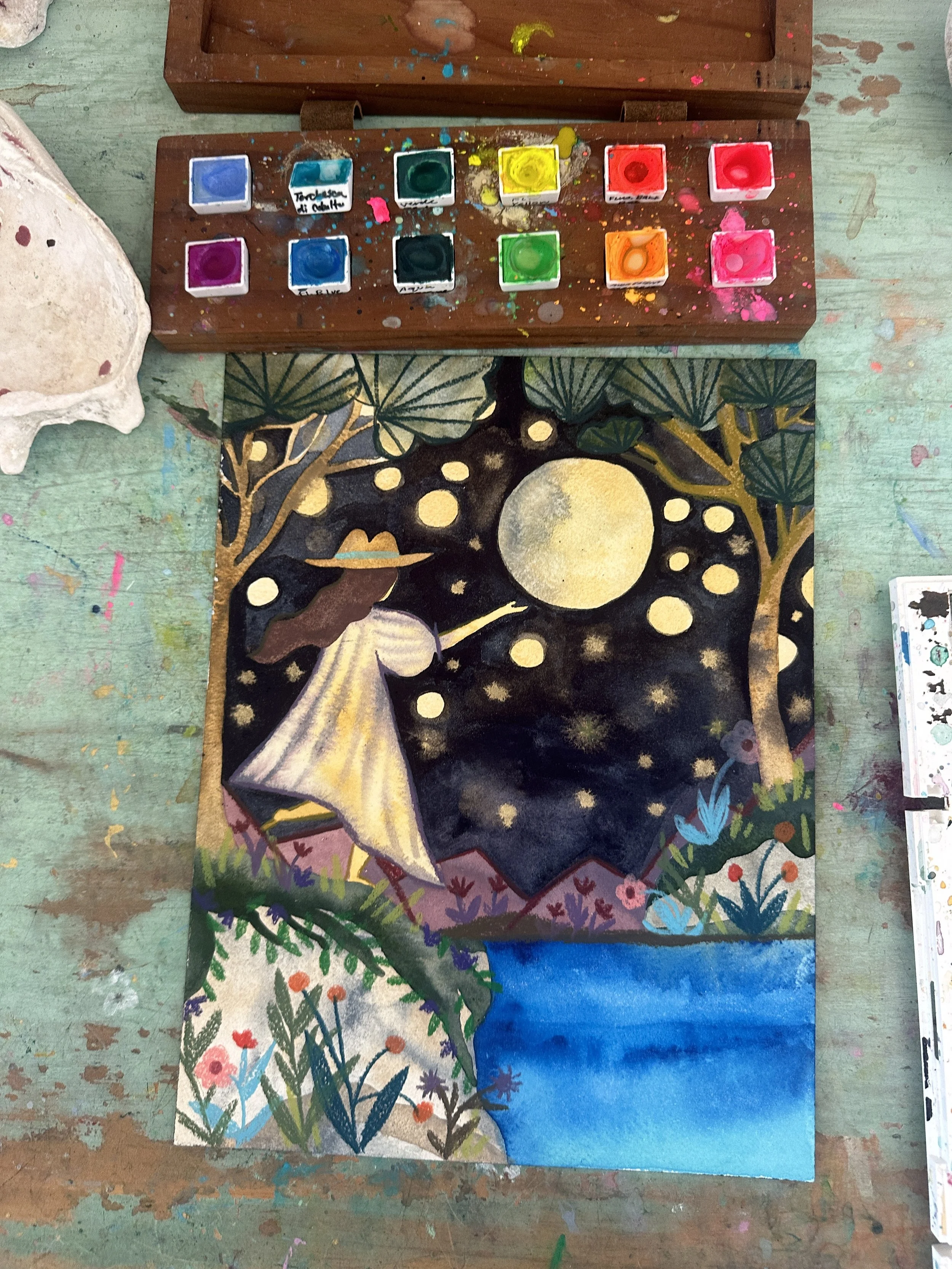 A collection of Emilia’s one-of-a-kind watercolor paintings, each piece capturing a moment of wonder through delicate brushwork and organic storytelling. These originals blend whimsy and emotion, offering a glimpse into a world where nature and imagination meet.
